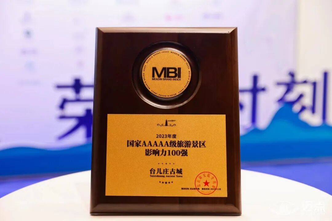 大会期间,发布了2023年度文旅景区行业研究成果,台儿庄古城荣获“中国AAAAA级影响力百强景区”。奖项的数据来源自迈点品牌指数MBI,主要从媒体、搜索、运营、点评4大维度分析品牌在互联网和移动互联网的影响力,此次获奖亦印证了台儿庄古城在行业内不断提升的品牌影响力及美誉度。