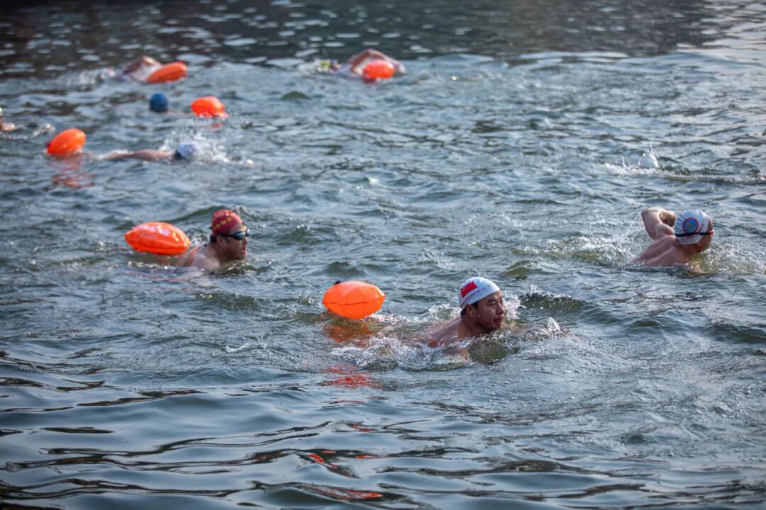 共有来自全国各地的150余名运动员参加此次冬泳节比赛。随着发令员的一声哨响,“噗通”纷响,紧张而又激烈的PK开始,冬泳选手们不畏严寒、“泳”于挑战的精神感染每一位观众。