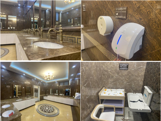 2. 卫生设施:公厕内的卫生设施齐备,洗手盆、镜子、烘干机、纸巾等设施功能完好,使用方便。