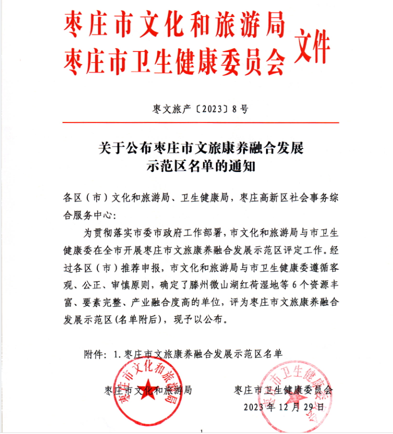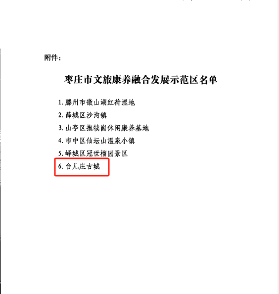 为贯彻落实市委、市政府工作部署,市文化和旅游局与市卫生健康委在全市开展枣庄市文旅康养融合发展示范区评定工作。经审核推荐、专家评审、会议研究、公示公布等程序,台儿庄古城成功入选枣庄市文旅康养融合发展示范区名单。
