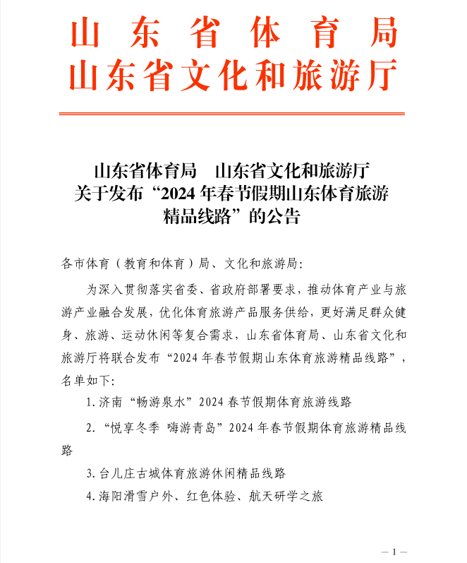 【喜报】台儿庄古城体育旅游休闲精品路线入选2024年春节假期山东体育旅游精品线路