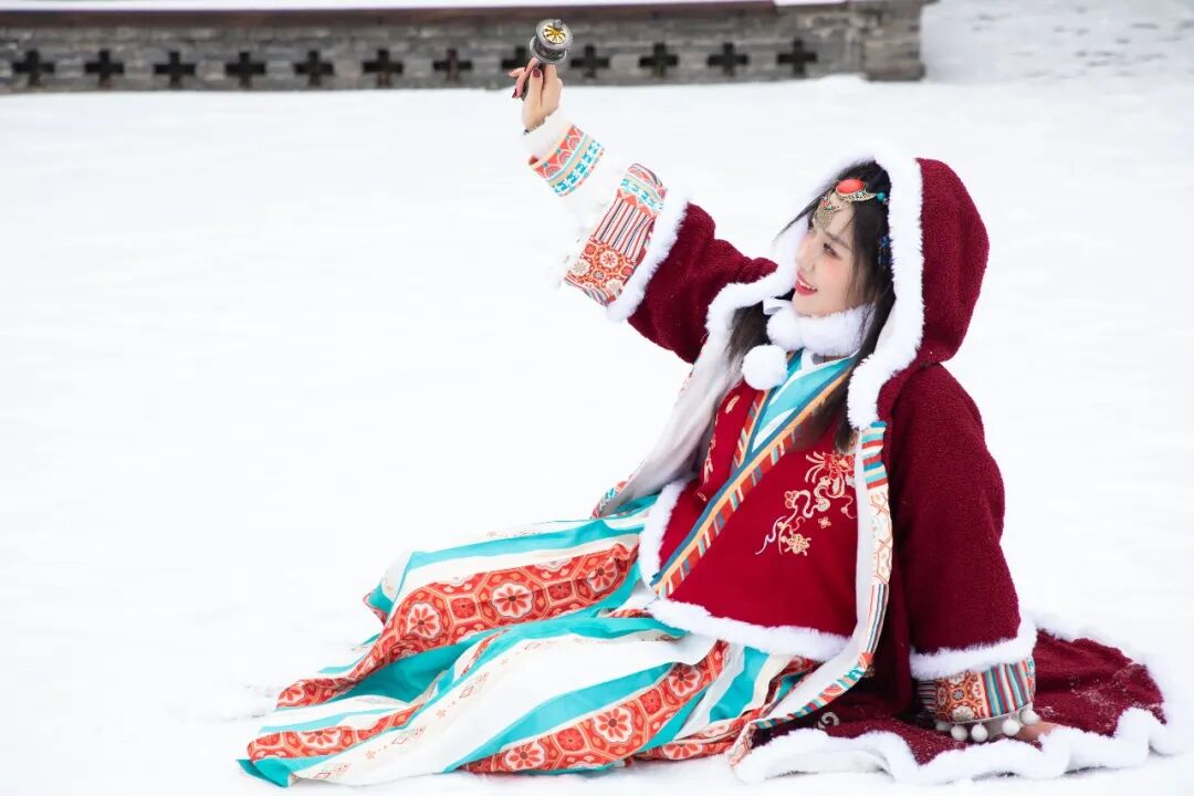 若雪在夜里来访,古城便从水墨中醒来,化身琉璃梦境。灯笼数点,暖光融雪,夜色被照得晶莹而温柔。此刻的城,仿佛童话里不曾醒来的静谧世界。