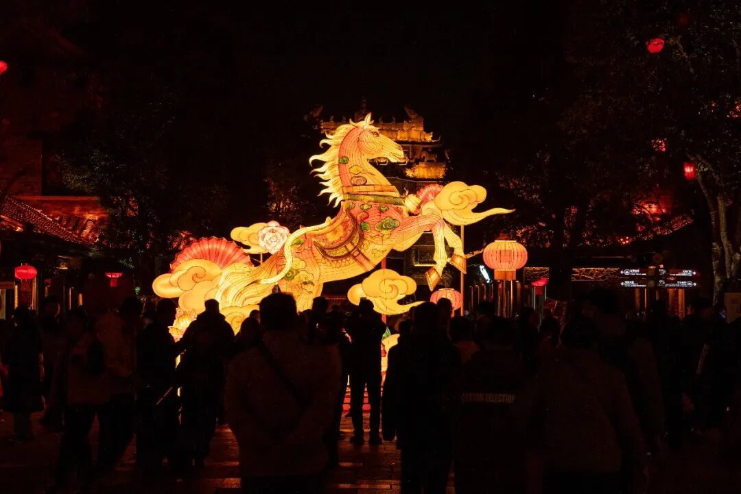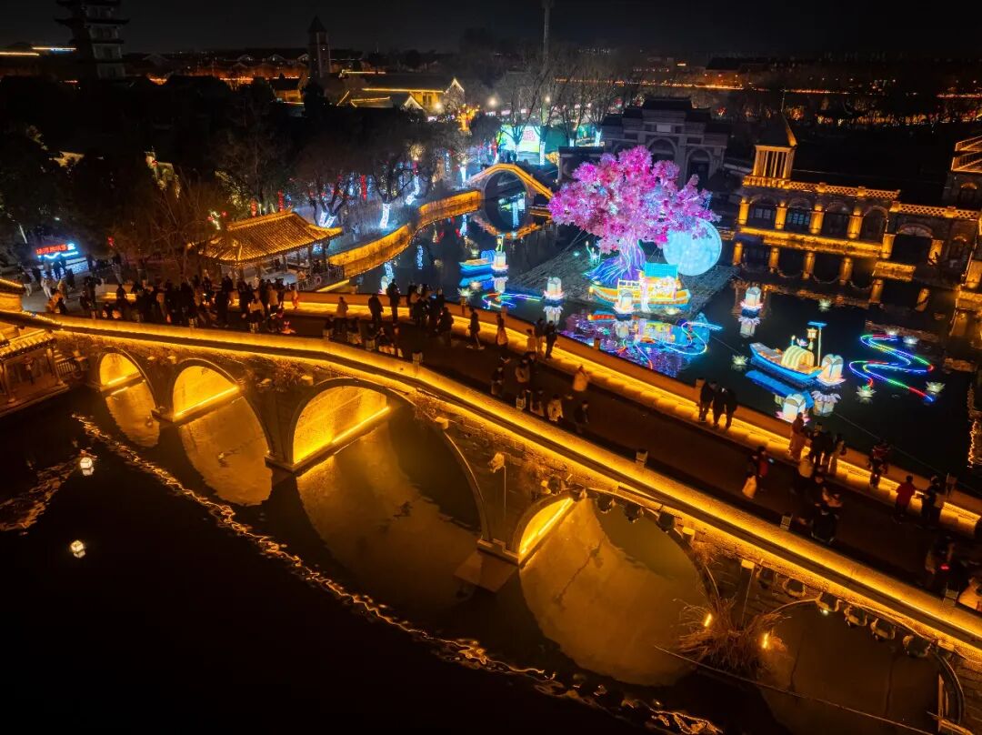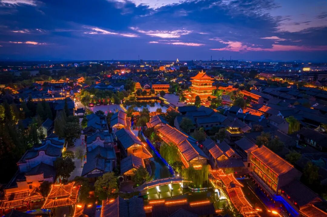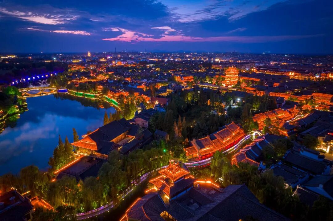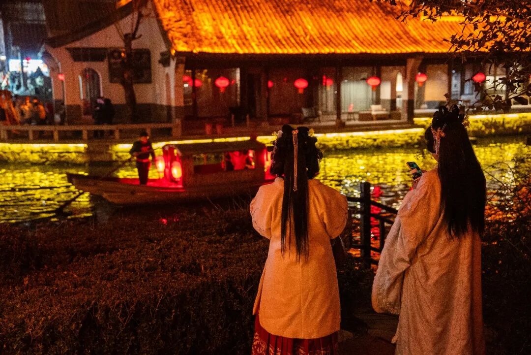 此刻的古城,褪去了白日的热闹,换上一袭华灯织就的晚装。青石板路被灯笼染成暖橙色,古运河的水面上,倒映着两岸次第亮起的灯火,风一吹,碎成满河星光。