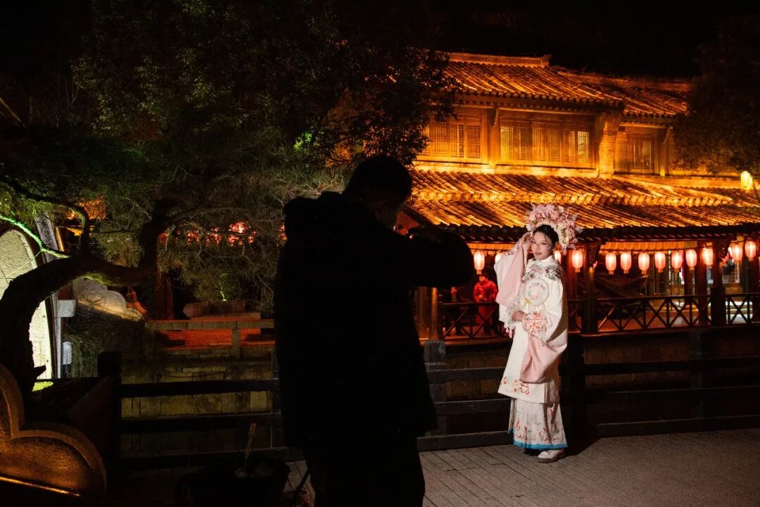 穿汉服的小姐姐提着灯笼从身边走过,衣袂飘飘,步履轻轻。那一抹嫣红消失在古巷深处,成了镜头里最惊艳的惊鸿一瞥。
