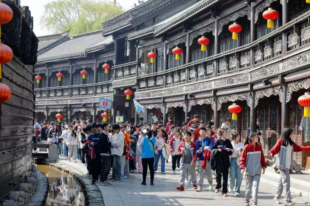 近年来,台儿庄古城持续开发了爱国主义教育、非遗文化传承、运河生态科普等25个精品课程,业务覆盖山东16地市及苏鲁豫皖、京沪高铁沿线城市等20余省市;满足不同学段学生的实践教育需求,极大激发了青少年对传统文化与抗战精神的学习热情。成功将历史文化资源转化为系统化、专业化、品牌化的研学实践课程,构建起“研学+亲子”“研学+党建”等多元融合产品矩阵。实现了从传统观光景区向沉浸式教育目的地的转化。