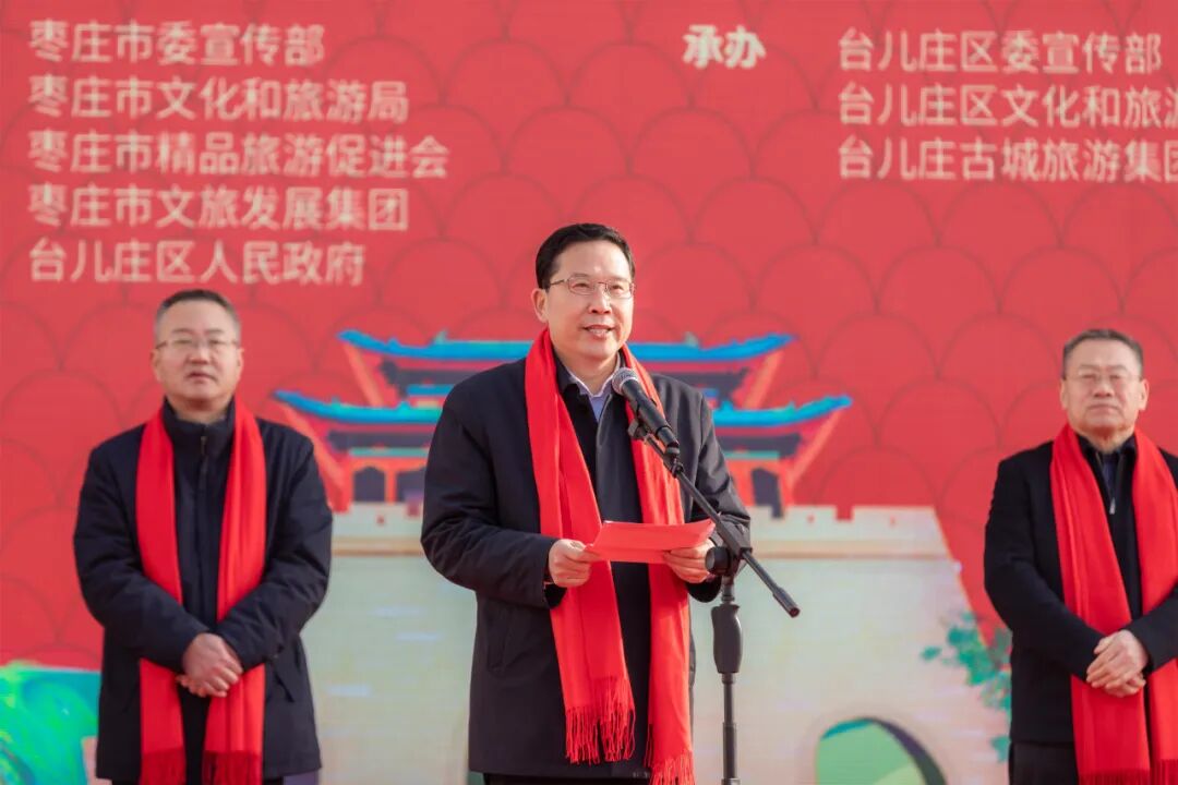 枣庄市政府副市长刘吉忠,枣庄市人大常委会原副主任、枣庄市精品旅游促进会会长于良,台儿庄区委书记彭照辉,枣庄市文化和旅游局党组书记、局长赵爱云,枣庄市文旅发展集团党委书记苑永利,枣庄市委宣传部副部长张磊,枣庄台儿庄古城管理委员会党组成员、副主任李玉锋,枣庄市文化和旅游局党组成员、副局长张勇,台儿庄区委常委、副区长孙作伟,台儿庄区委常委、宣传部部长、统战部部长王脉博出席活动。
