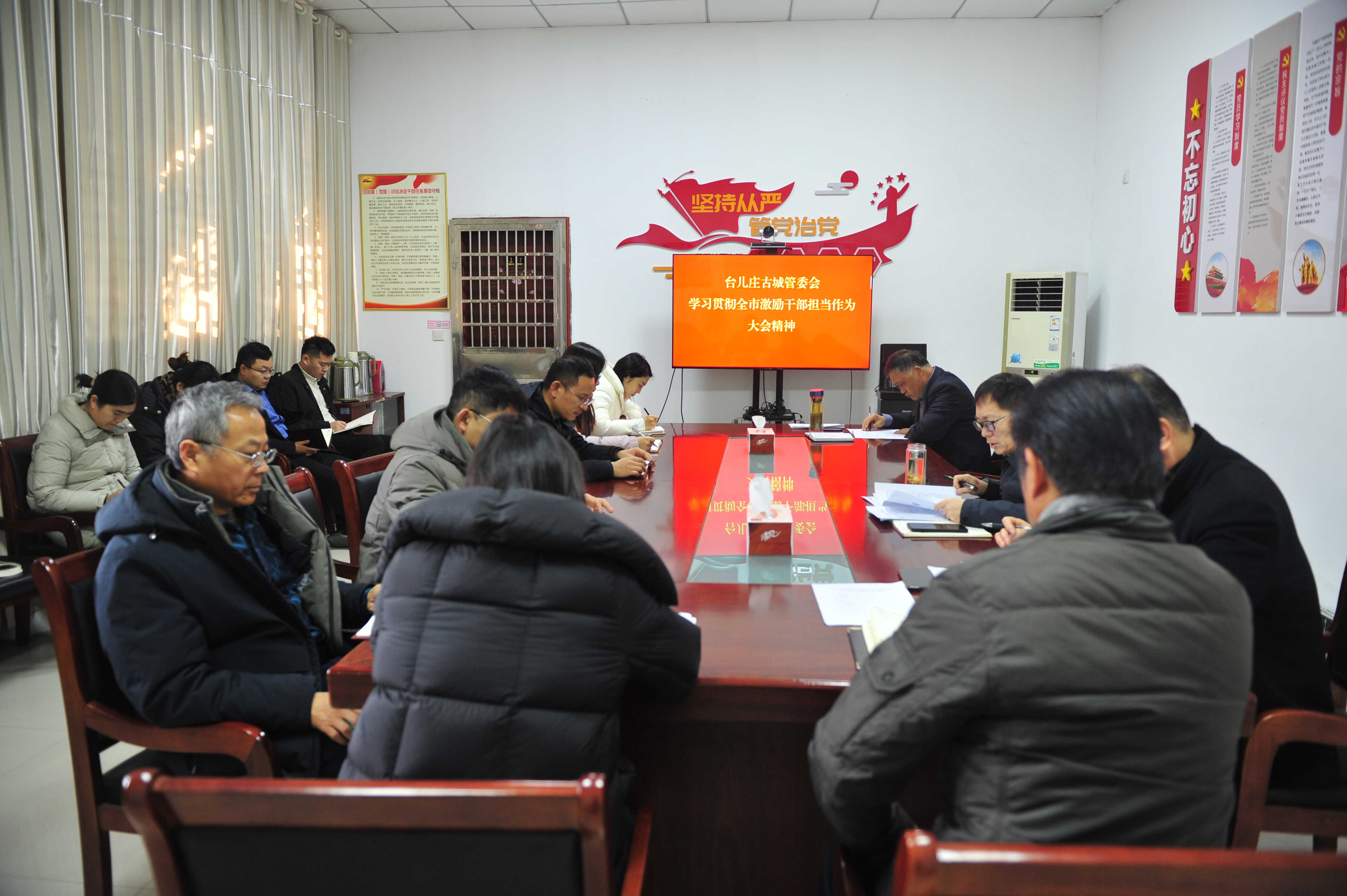 1月12日,台儿庄古城管委会召开专题会议,传达学习全市激励干部担当作为大会精神,研究部署下步贯彻落实措施。台儿庄古城管委会全体人员参加。