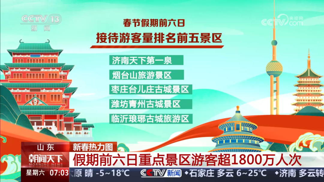 全网宣传矩阵累计曝光超亿人次,#过年就来台儿庄吧##千年古城迎新春体验不一样的年味#等话题引爆社交平台,央媒及省级主流媒体聚焦报道超百次,运河年味香飘全国。景区累计获央视报道13条,省级以上报道80余次;自媒体矩阵发布图文视频300余条,抖音景点人气榜、亲子出游人气榜第一名,“最年味,是山东!”全国广电联盟融媒联动直播活动全网总传播量超亿次,以全媒体传播力擦亮古城金字招牌。