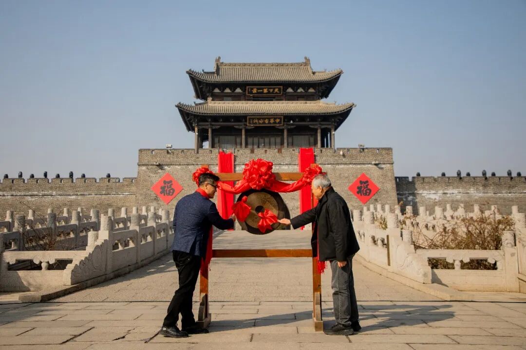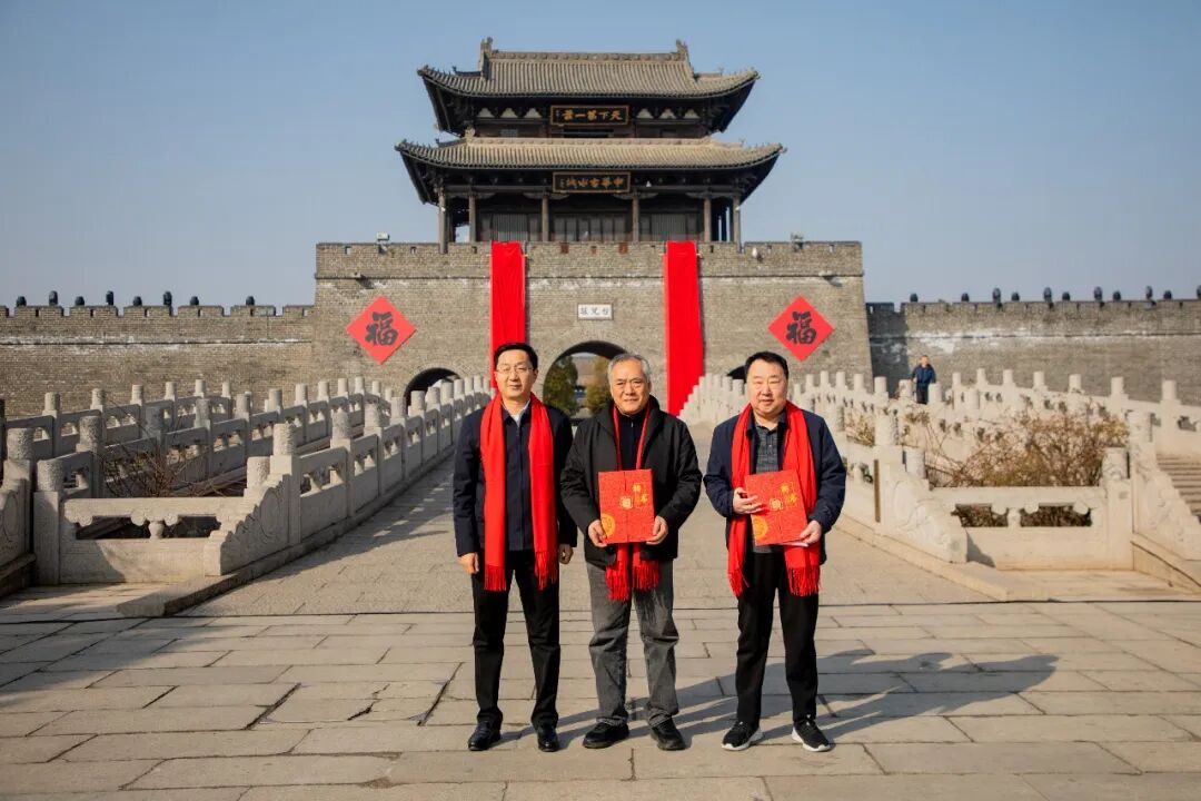 随后,在“3、2、1”倒计时中,刘玉鼎主席和苑永利书记共同移步东门,携手开启巨幅春联。鲜艳的春联在冬日暖阳下徐徐展开,既承载着古城浴火重生的历史记忆,也寄托着岁岁太平、文旅兴旺的时代愿景。
