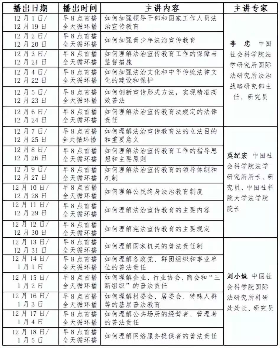 邀请参与中国社会科学院法学所所长、研究员莫纪宏,法学所国际法所法治战略研究部主任李忠,国际法所科研处处长刘小妹,精心录制了18讲《<中华人民共和国法治宣传教育法>理解与适用》(短视频),深入剖析立法亮点和法条精髓。