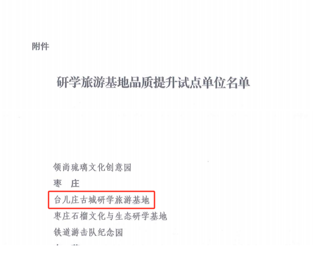 台儿庄古城研学旅游基地成功入选山东省研学旅游基地品质提升试点单位名单