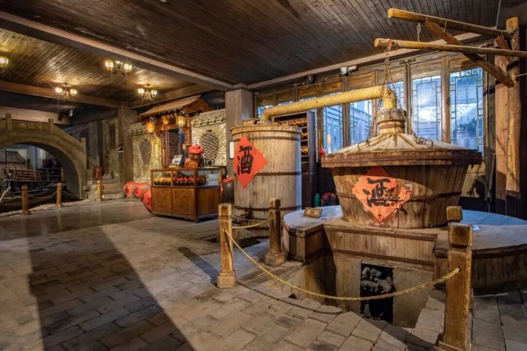 未入其馆,先闻酒香。道升酒坊内,老师傅正用古法蒸粮酿酒,酒甑里升腾的热气带着浓郁的粮香。一楼"传统酒作坊复原区"完整展示了酿酒的全过程,登二楼,500多件酒器琳琅满目,其见证着运河酒文化的千年传承。