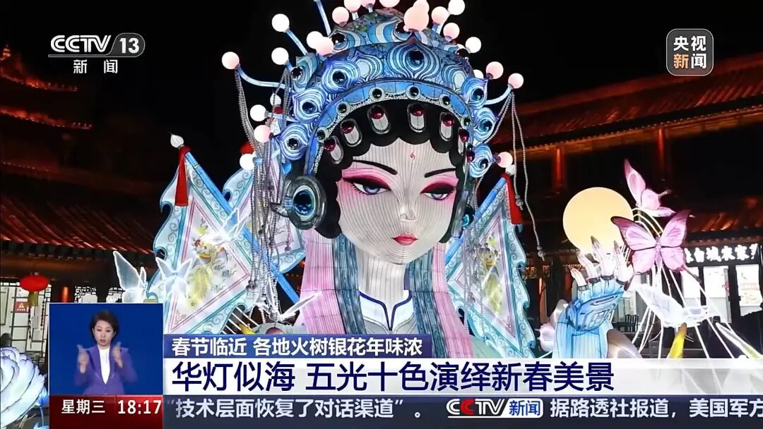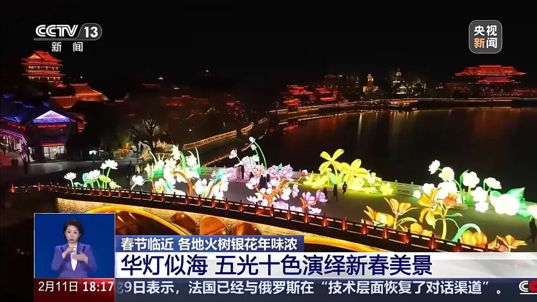 2月11日,CCTV13新闻频道聚焦台儿庄古城,报道新春将至,千年运河畔流光溢彩、年味浓郁,华灯似海、五光十色,演绎出喜庆热烈的新春美景。